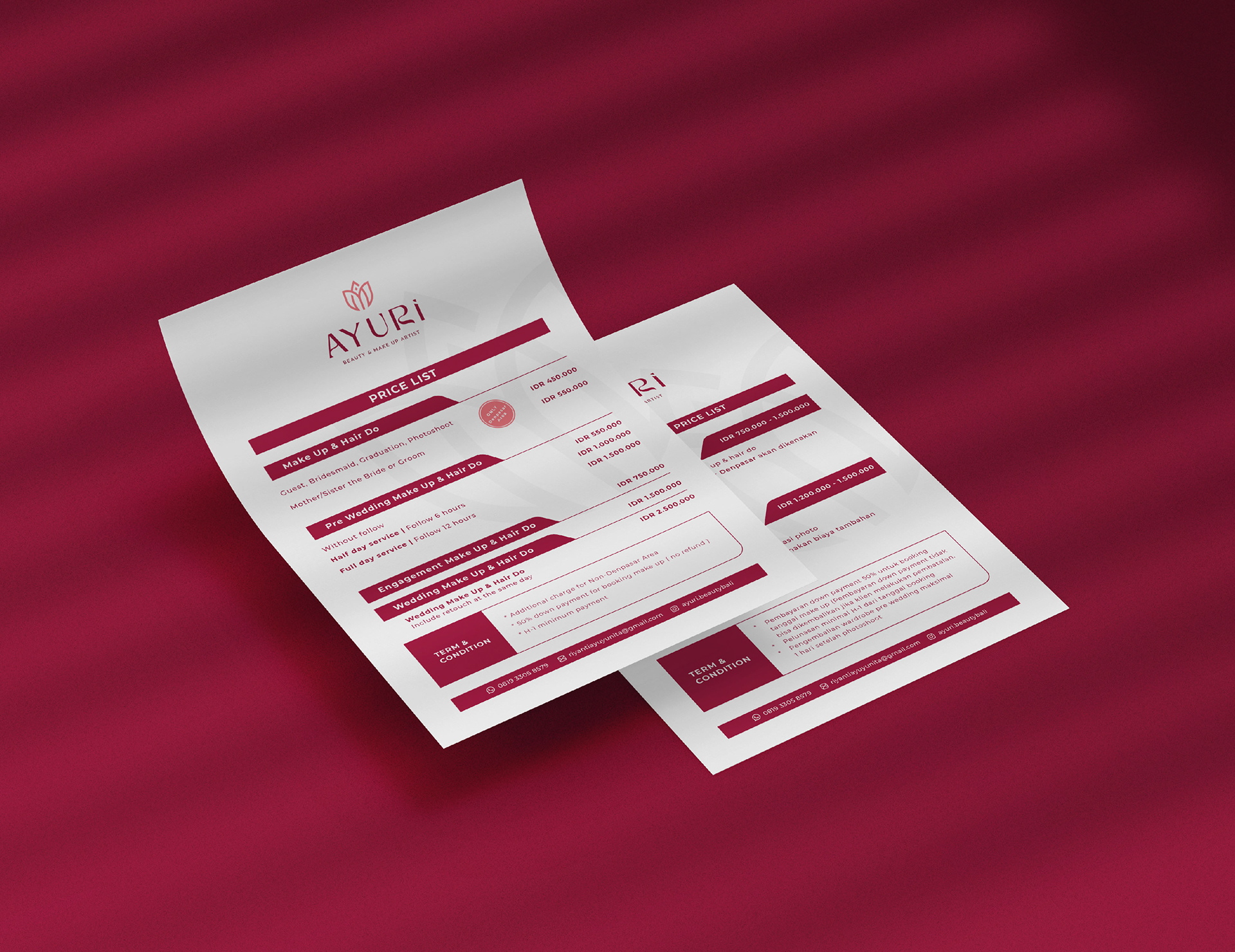 Ayuri Beauty and Make Up Artis is a brand based on Bali which focused on bridal make up. We have designed the branding based exclusively combined on a logogram and logotype. Every single thing have a meaning and we make it looks stunning.
